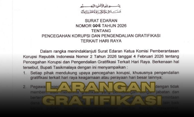 Kebijakan tersebut tertuang dalam Surat Edaran Bupati Tasikmalaya Nomor 0018 Tahun 2026 tentang pencegahan korupsi dan pengendalian gratifikasi terkait perayaan hari raya.